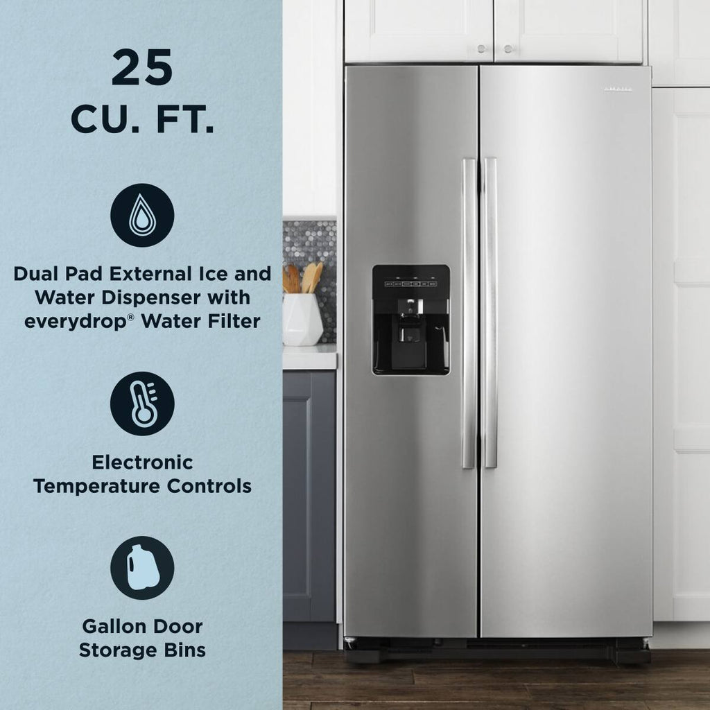 | Product Name: | Amana - 24.5 Cu. Ft. Side-by-Side Refrigerator with Water and Ice Dispenser - Stainless steel |