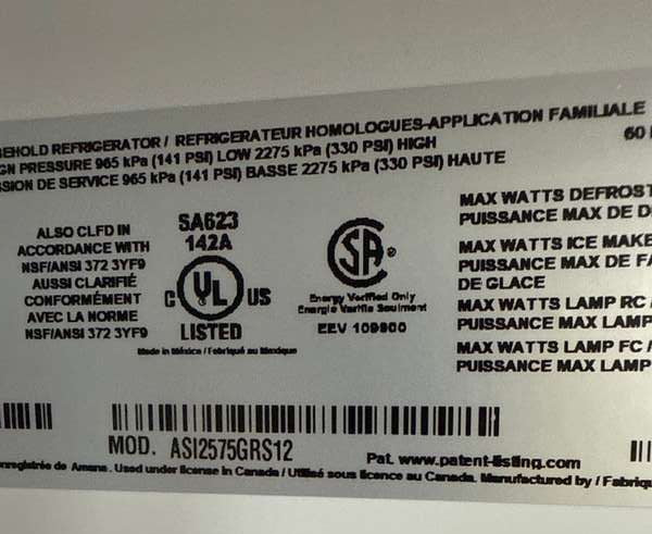 | Chemical Disclosures: | "This product may contain one or more regulated perfluoroalkyl and polyfluoroalkyl substances or PFAS. Mandatory reporting is not required until January 1, 2025. Whirlpool Corporation is in the process of gathering more information on PFAS use across our supplier base, and will update this disclosure as we learn more. For more information about chemicals in this product, visit www.whirlpool.com/regulatory.html. [Este producto puede contener una o más sustancias perfluoroalquilo y polifluoroalquilo reguladas o PFAS. No se requieren informes obligatorios hasta el 1 de enero de 2025. Whirlpool Corporation está en el proceso de recopilar más información sobre el uso de PFAS en nuestra base de proveedores y actualizará esta divulgación a medida que sepamos más. Para obtener más información sobre los químicos en este producto, visite www.whirlpool.com/regulatory.html.] " |