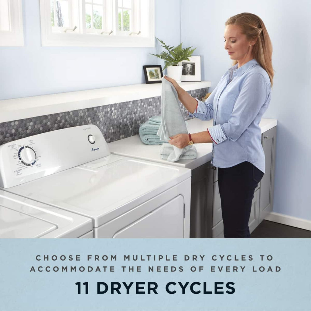This Amana NED4655EW offers exceptional performance and reliability. Large capacity so you can complete your laundry in fewer loads 6.5 cu. ft. D.O.E. capacity.. Safely dry your garments and linens with 1 of 11 cycles Includes wrinkle prevent, air dry, damp dry and more.. Select the right drying temperature for your clothes Choose from 3 temperature settings to protect your fabrics. Designed for modern homes, this appliance combines advanced technology with user-friendly operation. Includes 1 Year Full Manufacturer Warranty for complete peace of mind.