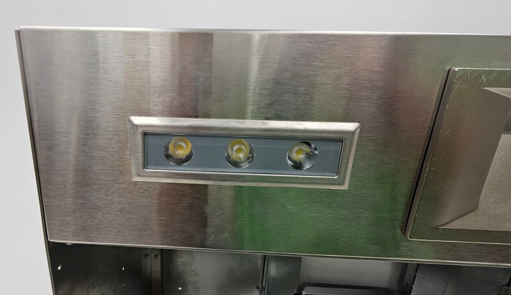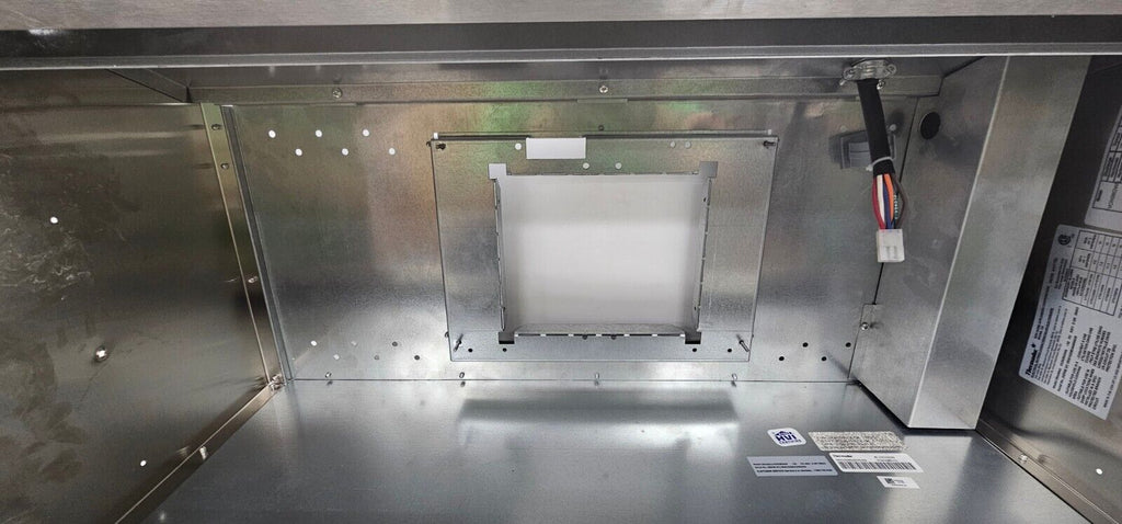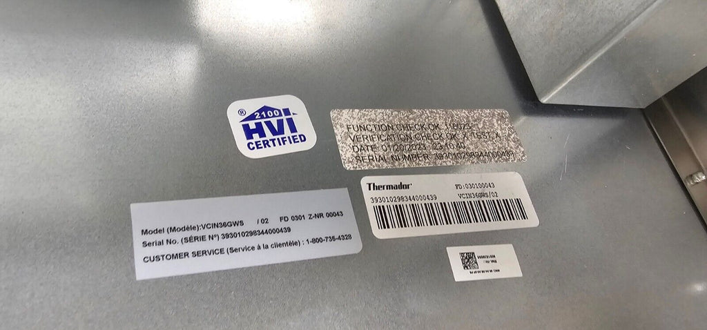 Elevate your kitchen with the Thermador VCIN36GWS. Despite minor dings, this open-box range hood offers professional-grade ventilation, smart connectivity via Home Connect, and sleek design.