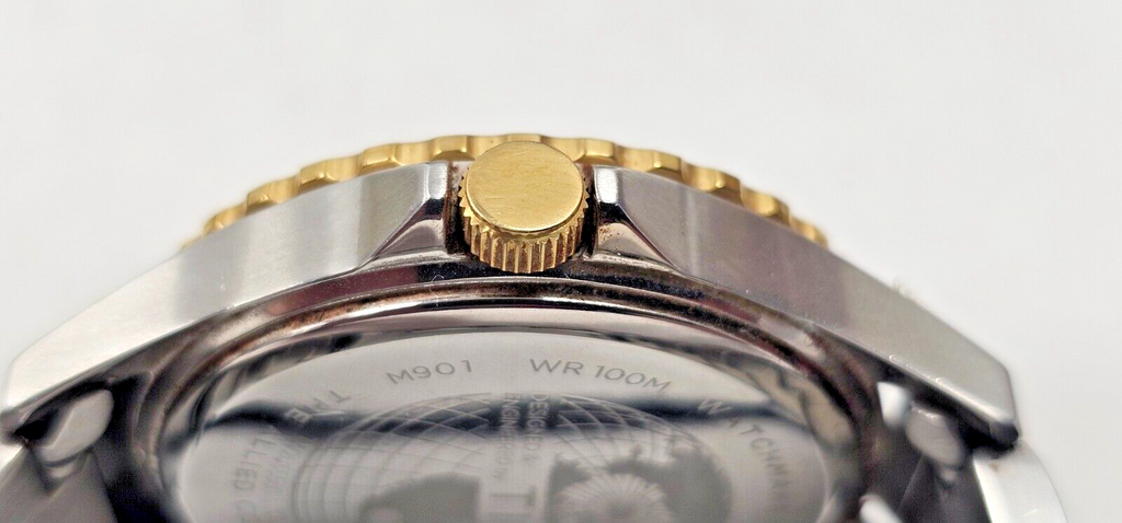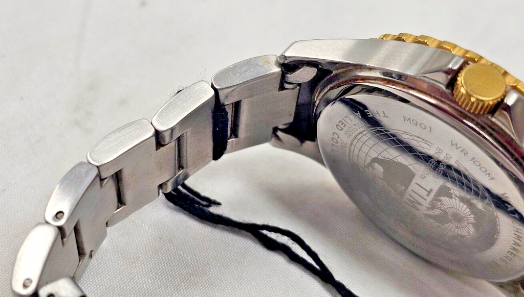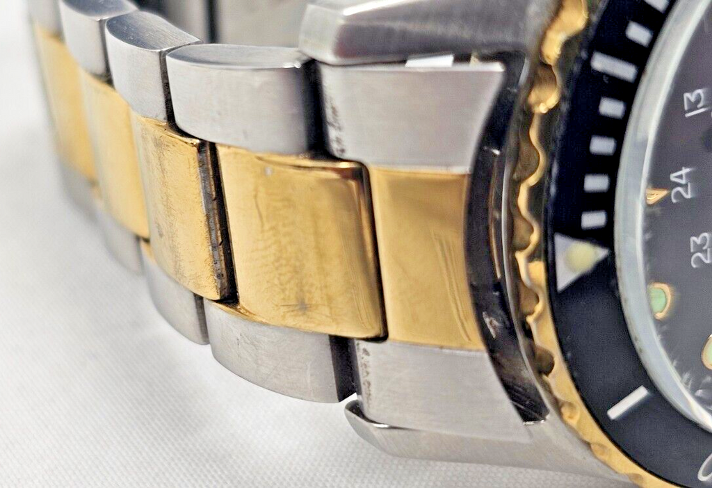Item is New Open Box in original box. Item has minor scuffs on glass & Wrist band. Item comes with watch, watch pillow, 2 wrist link, and manual.