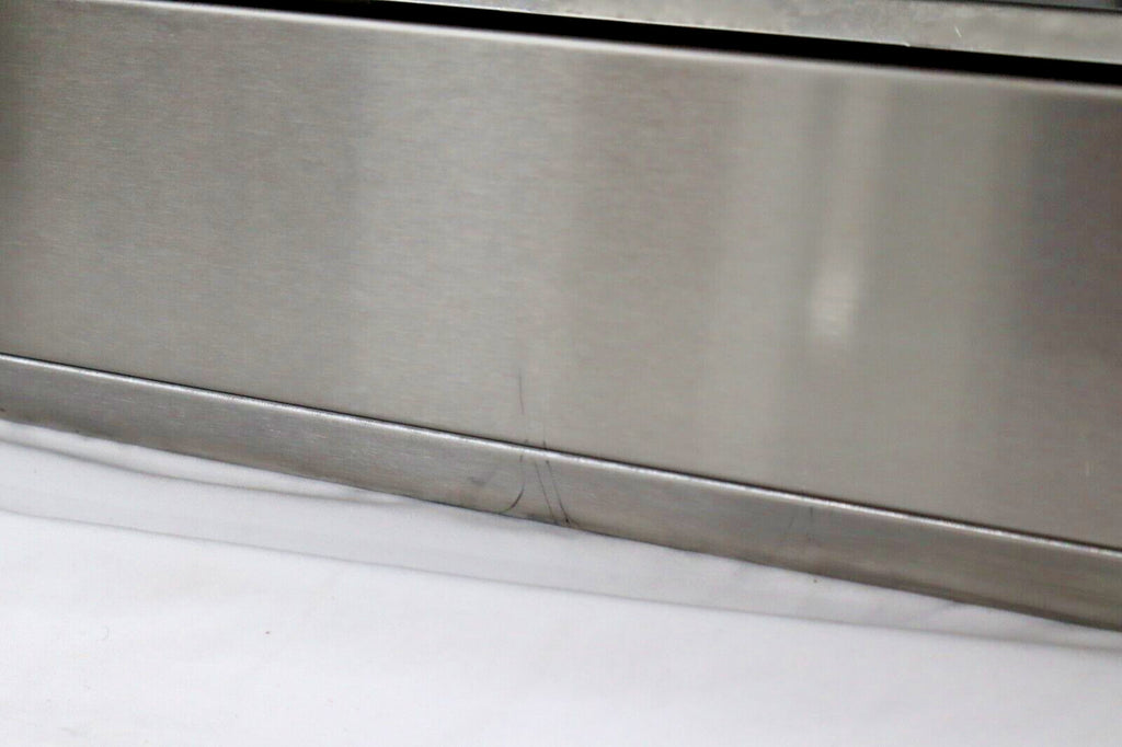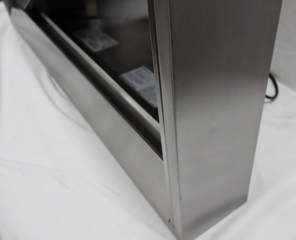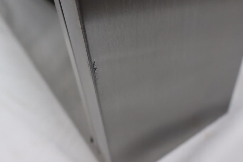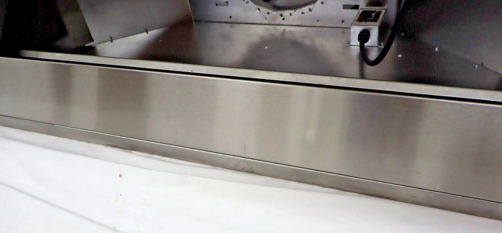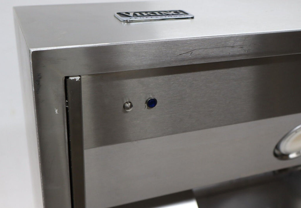 The Viking VCWH54848SS 48" Wall Mount Chimney Range Hood features a virtually seamless design and heavy-duty construction for professional performance in your kitchen. Equipped with a heat sensor for automatic power adjustment, bright LED lighting, and backlit LED knobs, it ensures efficient ventilation and easy control. This display model has multiple visible scuffs but is fully functional. Blower sold separately; compatible with Viking ventilator kits. Sourced from major retailers for 100% authenticity, backed by full manufacturer warranty.
