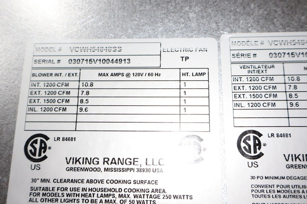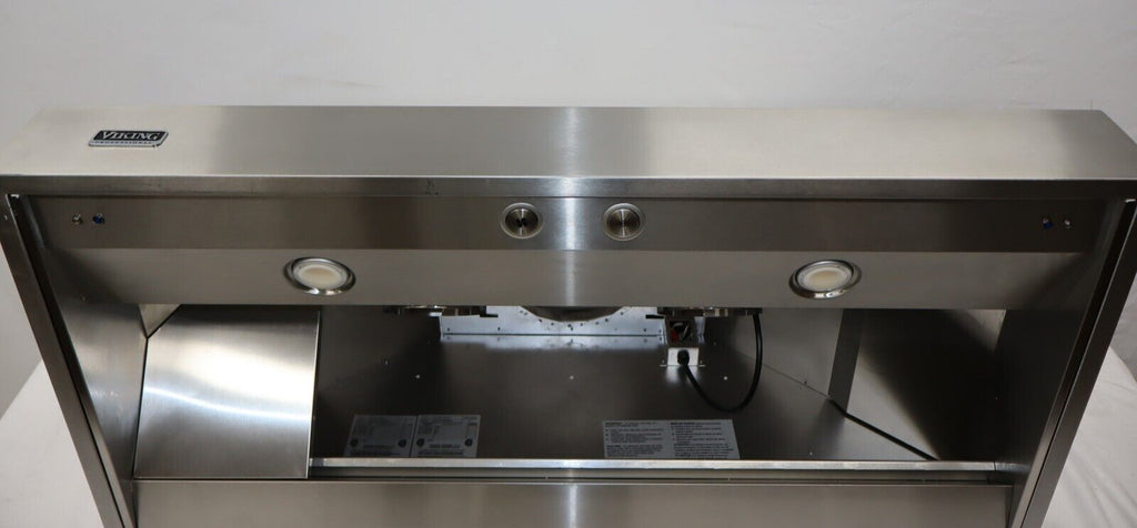 Elevate your kitchen with the Viking VCWH54848SS. This display model offers professional-grade ventilation, smart features like heat sensing and LED controls, and durable construction, backed by our commitment to quality. Blower sold separately for custom installation.