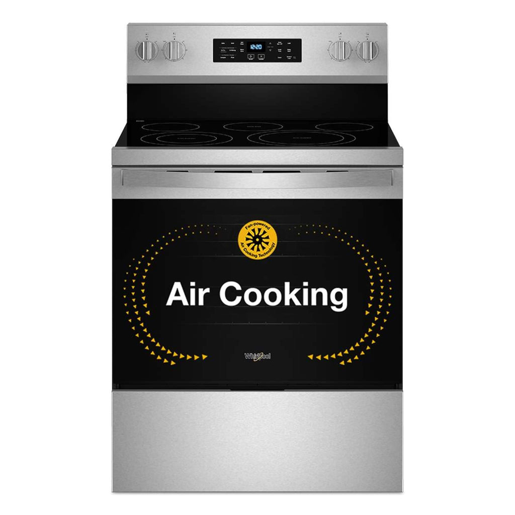 This Whirlpool WFES5030RZ offers exceptional performance and reliability. Air Cooking technology Add convenience to your cooking and spice up the menu with the added power of No Preheat Air Fry and Air Baking. No Preheat Air Fry Save up to 20 minutes* with No Preheat Air Fy. Get the right heat at the right time with our most advanced Air Fry mode. Get fast, crispy results on chicken wings and mozzarella sticks without the guilt. *Compared to WFE550S0LZ. Air Baking Go from gooey to golden and get even results when backing on multiple racks with Air Baking. Our high-speed fan optimizes air flow and drives consitent heat throughout the oven. Get golden results on breads, pastries and deserts with Air Baking. Designed for modern homes, this appliance combines advanced technology with user-friendly operation. Includes 1 Year Full Manufacturer Warranty for complete peace of mind.