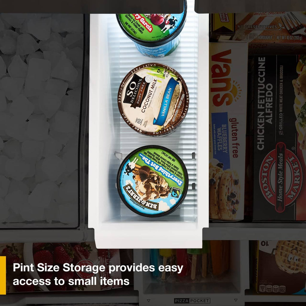 This Whirlpool WRFF3136SZ offers exceptional performance and reliability. 31 cu ft capacity At 31 cu. ft., our largest capacity french door refrigerator in its class* provides family-sized space, and a large capacity ice maker to keep up with your family's busy life.*Standard depth refrigerators with no water dispensers.*Standard depth refrigerators with internal water dispensers.. Large Capacity Freezer Ice Storage Large Capacity Freezer Ice stores over 7 lbs of ice with built-in ice maker in freezer. Use it to fill the cooler, or turn it off for additional frozen storage space. Pint Size Storage Pint Size Storage provides easy access to frozen snacks and pint-sized ice cream, so they won't get buried in your freezer. Designed for modern homes, this appliance combines advanced technology with user-friendly operation. Includes 1 Year Full Manufacturer Warranty for complete peace of mind.