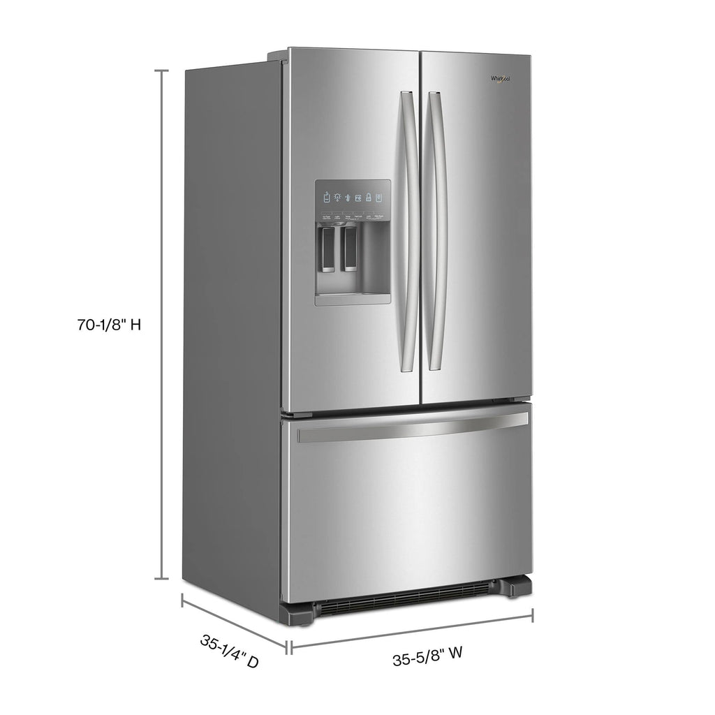 This Whirlpool WRFF3436RZ offers exceptional performance and reliability. Elevated Deli Drawer The Elevated Deli Drawer makes meats and cheese more visible, so you can spend more time enjoying deli essentials and less time looking for them.. Maximum Ice Capacity No French Door Bottom Mount Refrigerator in-door ice maker holds more ice. With 3.7lb, your ice maker will stay full even on your family's fullest days.. Exterior Water Dispenser with EveryDrop Filtration Access fresh filtered water without ever opening the refrigerator door. Designed for modern homes, this appliance combines advanced technology with user-friendly operation. Includes 1 Year Full Manufacturer Warranty for complete peace of mind.