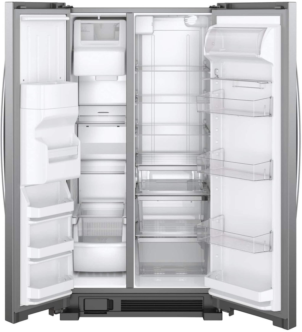 This Whirlpool WRS321SDHZ offers exceptional performance and reliability. Lowest Repair Rate Whirlpool brand refrigerators have the lowest repair rate among side by side refrigerators**Claim compares Whirlpool branded refrigerators to GE, Frigidaire, Samsung and LG.Based on service required data, Q2 2022-Q2 2023, Traqline - The Stevenson Company, 2023.. Can Caddy Free up shelf space and get more flexibility using this in-door can caddy that holds either cans or bottles.. Frameless Glass Shelves Store more items on each shelf with wall-to-wall frameless glass shelves, which offer greater storage flexibility. Designed for modern homes, this appliance combines advanced technology with user-friendly operation. Includes 1 Year Full Manufacturer Warranty for complete peace of mind.