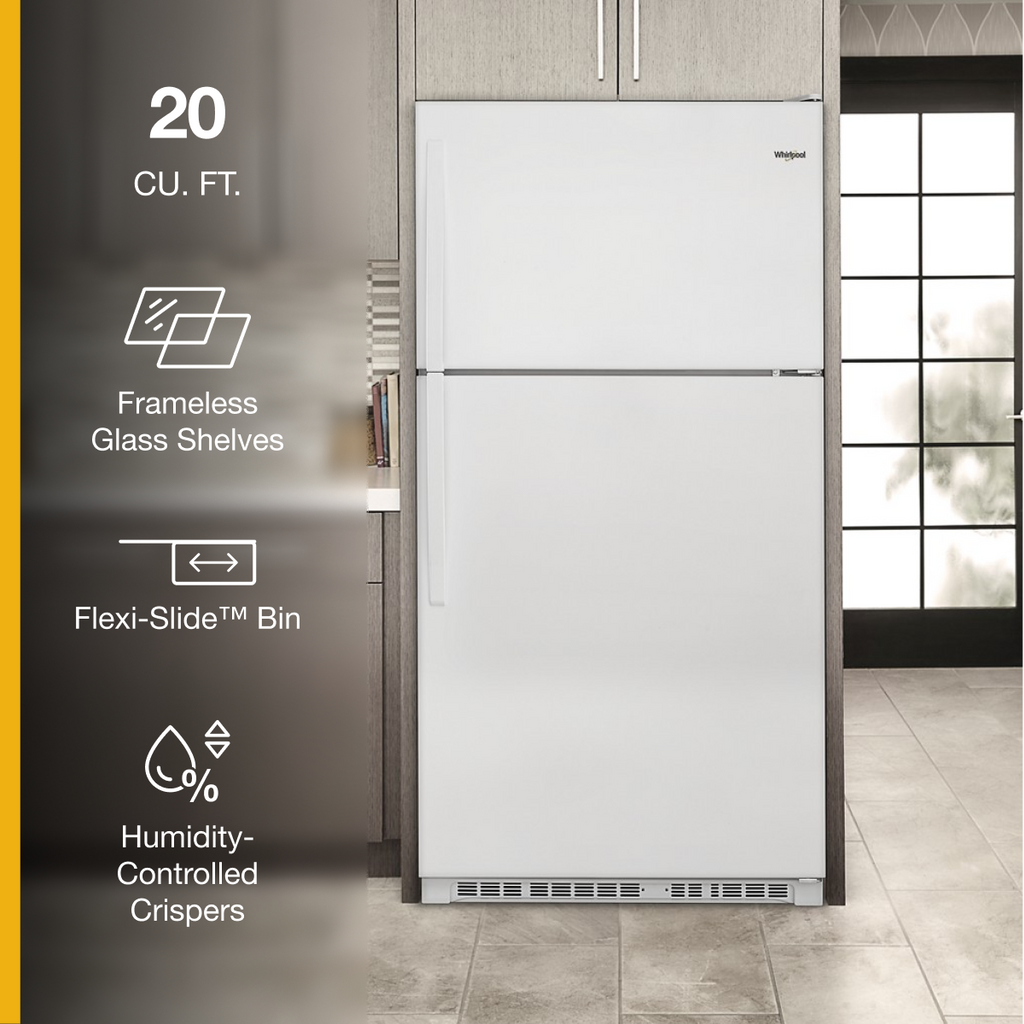 This Whirlpool WRT311FZDW offers exceptional performance and reliability. FreshFlow keeps food odors at bay and helps preserve produce Active air circulation removes smells from your refrigerator, while a produce-preserver system in the crisper drawers maintains the freshness of fruits and vegetables.. Humidity-controlled crispers keep produce fresher longer Includes 2 crisper drawers that extend the life of fresh fruits and vegetables, reducing waste.. Dial temperature controls ensure simple operation For straightforward control of refrigerator and freezer temperature. Designed for modern homes, this appliance combines advanced technology with user-friendly operation. Includes 1 Year Full Manufacturer Warranty for complete peace of mind.