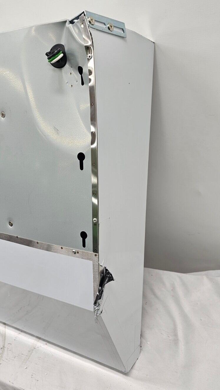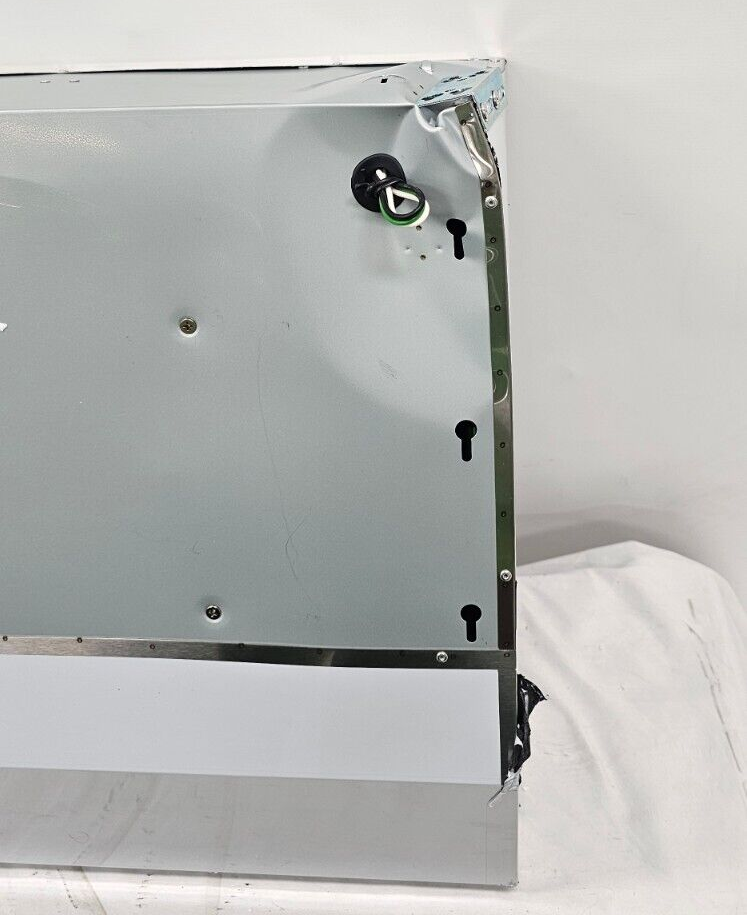Item is Open Box in original box. Item has ding on back left & right side. Item comes with hood, installation kit, and manual. Box has only been opened to verify contents. Packaging may show signs of handeling.